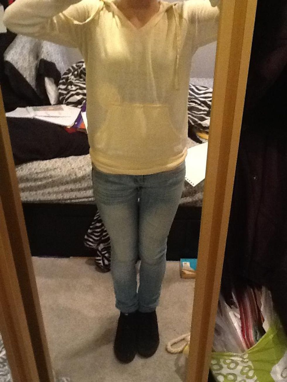 put on some stylish jeans. make sure they aren't too tight so you can move freely in them. I got these from wet seal