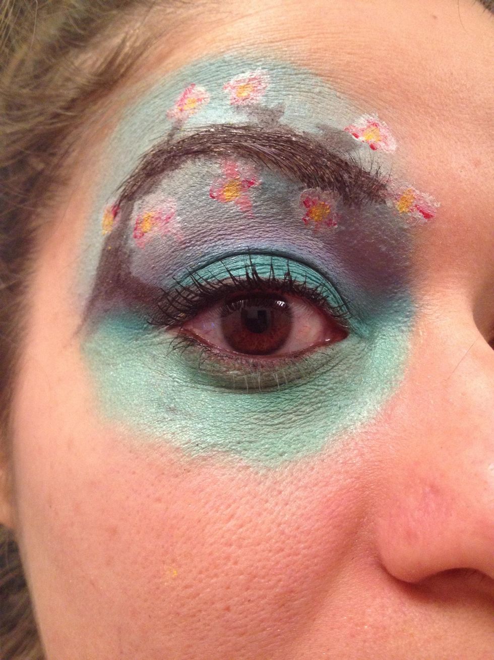 Begin filling in your brows all the way to the green to create what resembles a tree trunk.