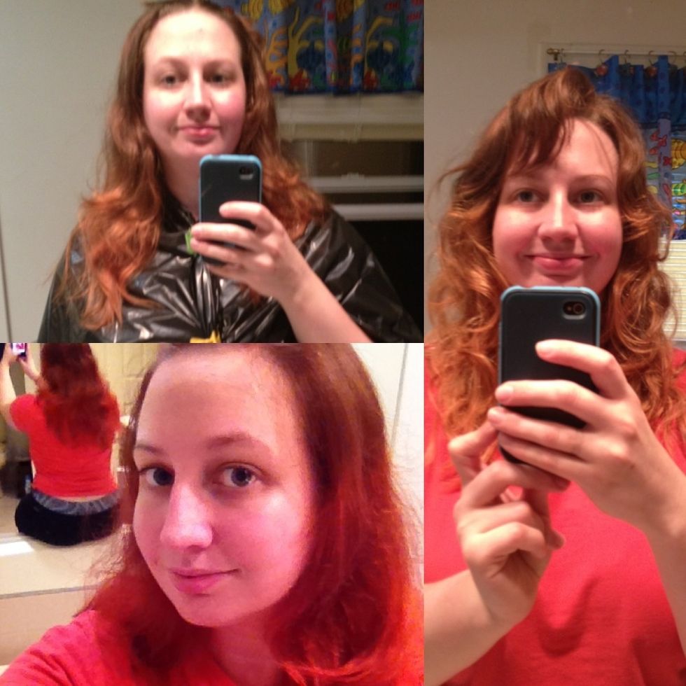 Top-before Right-blonde Bottom-red ombré (finished hair!)