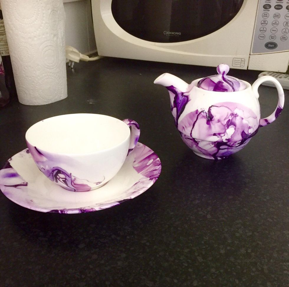 Put a few drops of your chosen colours and swirl a little bit with the toothpick