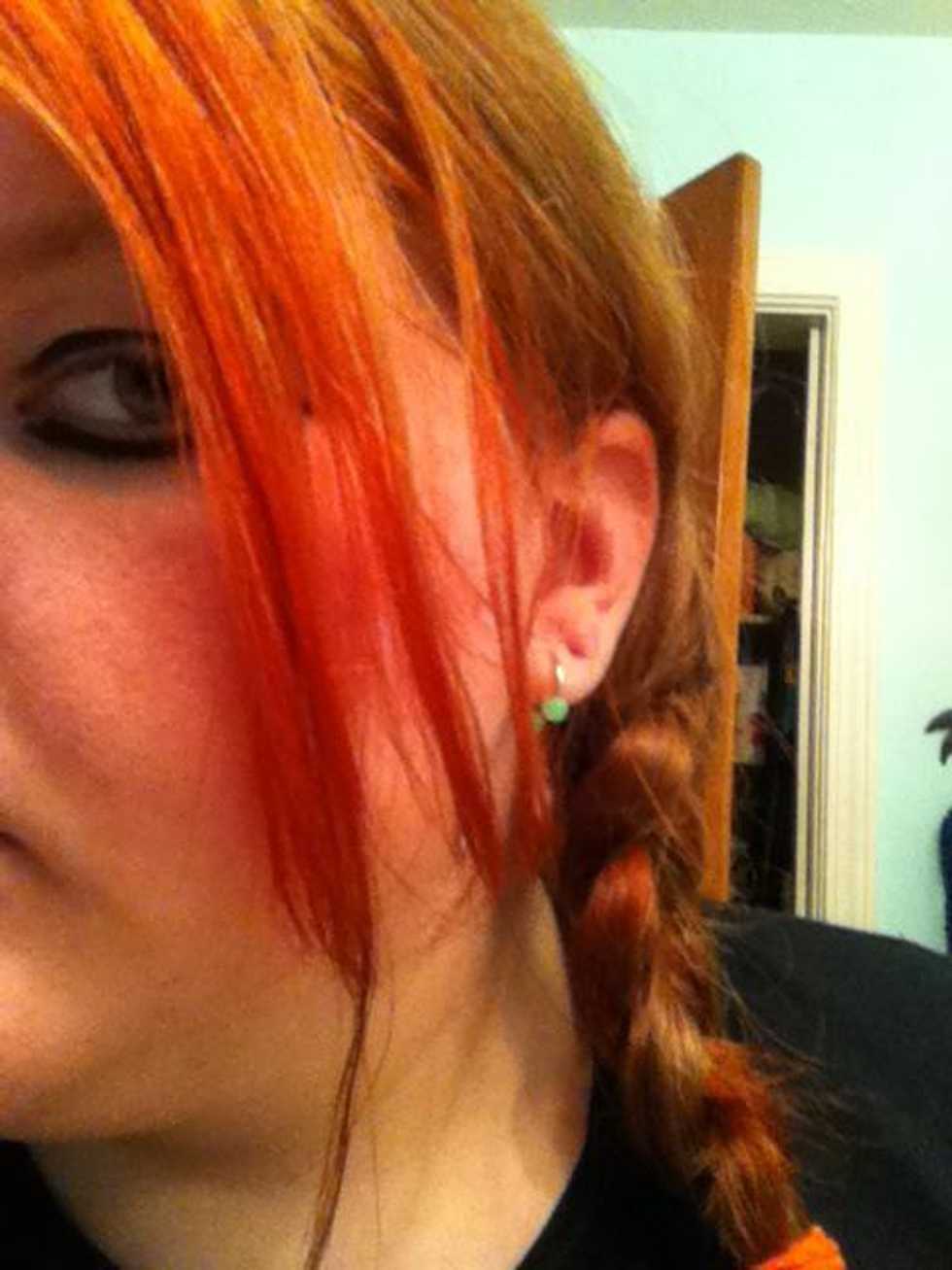 Sorry you can't really see it, but fill a cup with water and put your hair in it to rinse out SOME of the mix