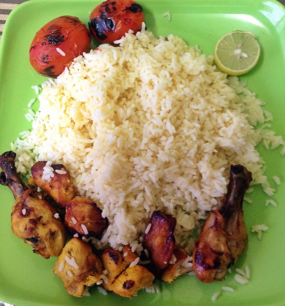 Mix the Chicken pieces well with Yogurt, Saffron, Lime juice, Black Pepper, Salt, Yellow Turmeric, 1 tablespoon Olive Oil. Marinate for about 4 hours.