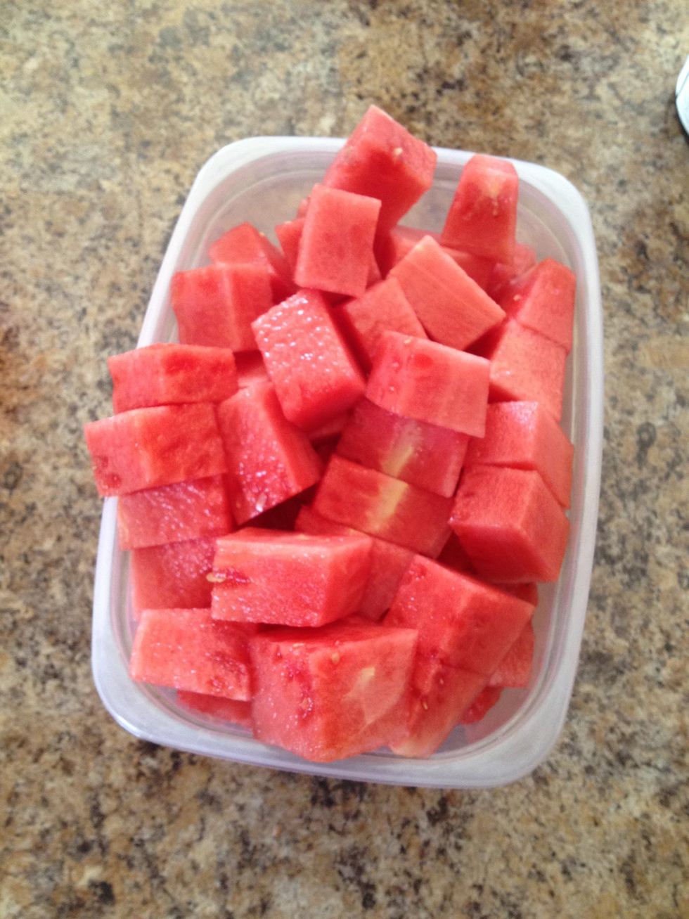 How to easily cut whole watermelon into bite size pieces Quick and easy way to chop watermelon, way cheaper than buying already cut, and much tastierLindsey Harper 84