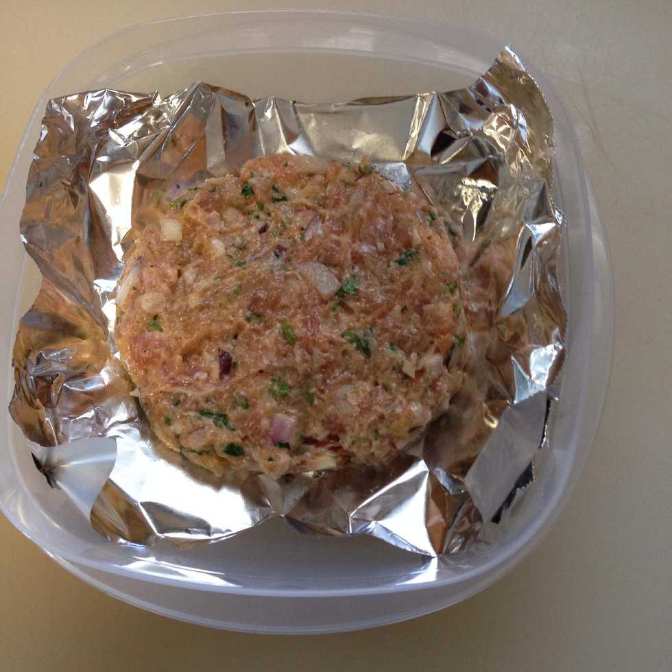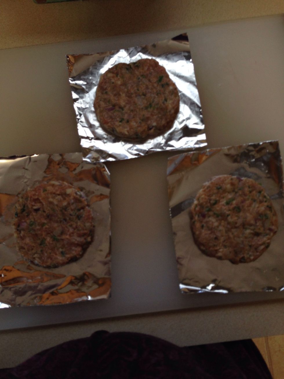 Cut aluminum in squares depending on the size of your patty.