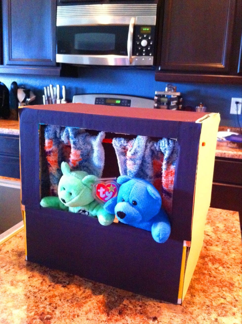 Cut off a flap in the back so the kids can reach their puppets in while box is sitting on a table.