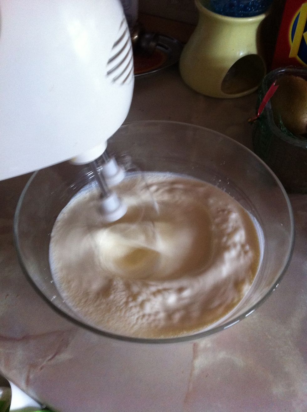 Whip the double cream in a bowl along with vanilla extract and sugar (adding sugar bit by bit not all in one go) until its quite stiff but do not over beat as it will start turning yellow into butter!
