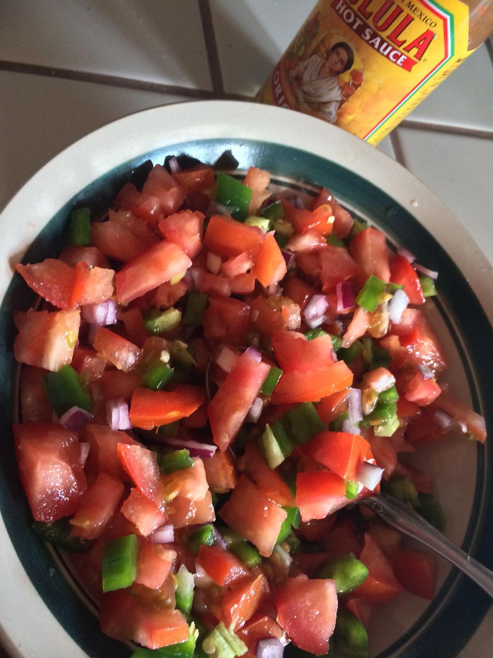 Cut your vegetables into small squaresPink saltCombine tomatoes, onion, jalapeños, salt, lime juice, and cholula.