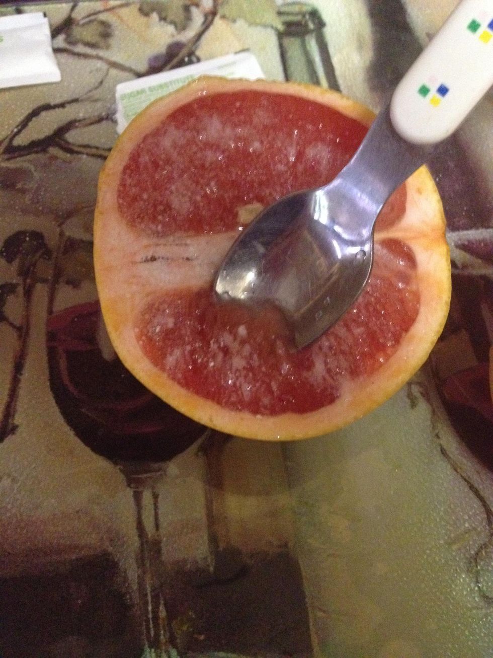 Cut the grapefruit in halfThis is what it should look like nowCut slits in the grapefruit from the top to the bottom.You can add Splenda or stevia extract whichever is still healthy !Sprinkle the zero calorie sweetener and serve with a spoon !