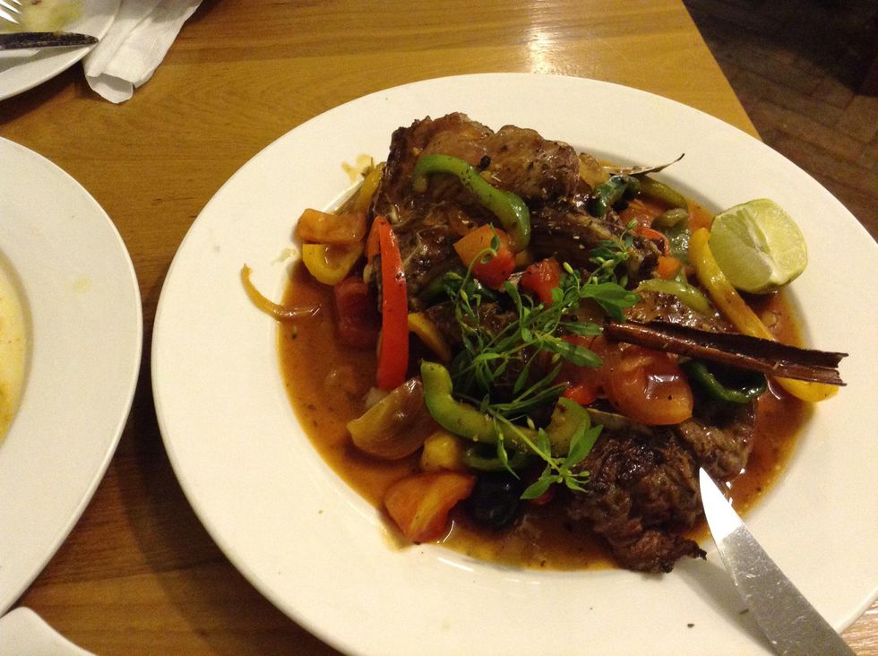 Wait for your food, have good 2 glasses of water.then your starter arrives, "Tomatoes and Mozarella"Oh, here it comes, "Prok Chop"And . . . this is "Herb Grilled Fish"!Ginger bread, to close offwith a cup of thin foamy Cuppacino!