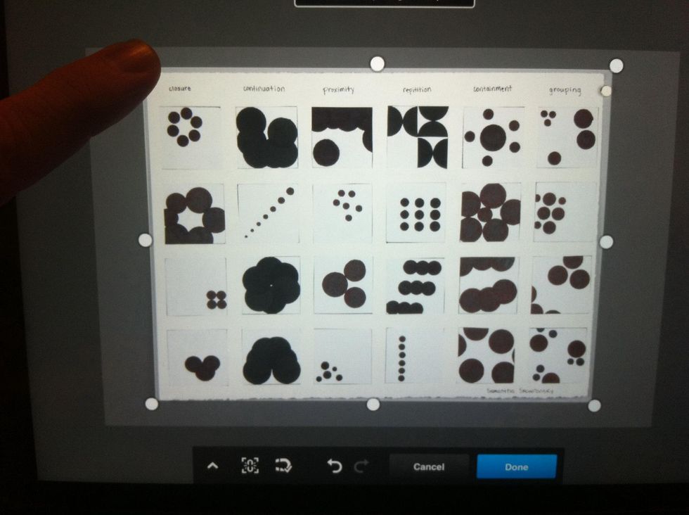 In the top row, the adjustment sliders icon will let you adjust exposure, contrast, color, and more. Aim for the most accurate representation of the way your work really looks.