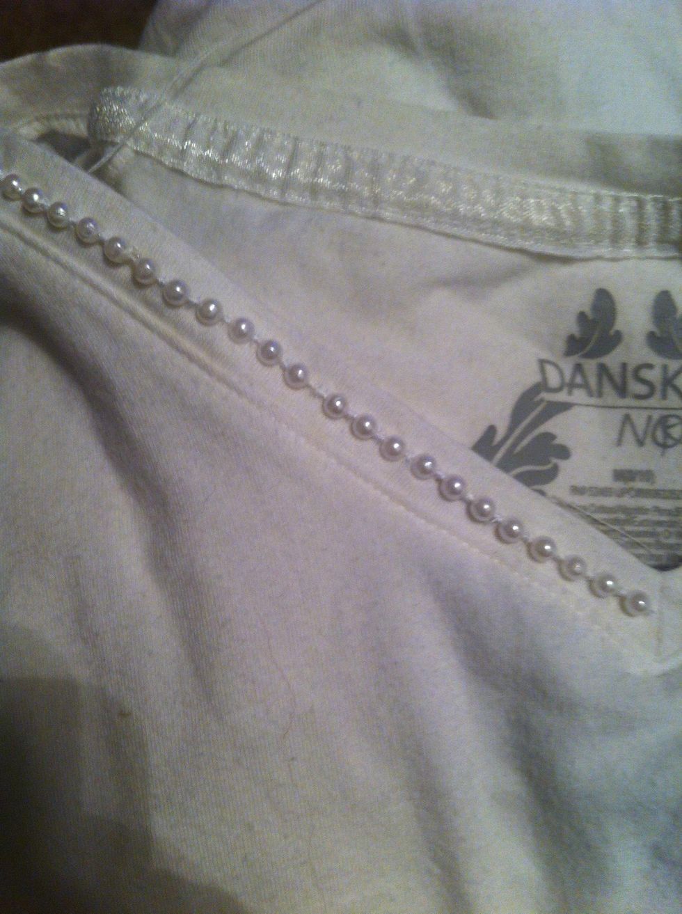 This kind of pearl trim is ideal because its easy to hide your stitches in the links. You can see I've already sewn a few down.