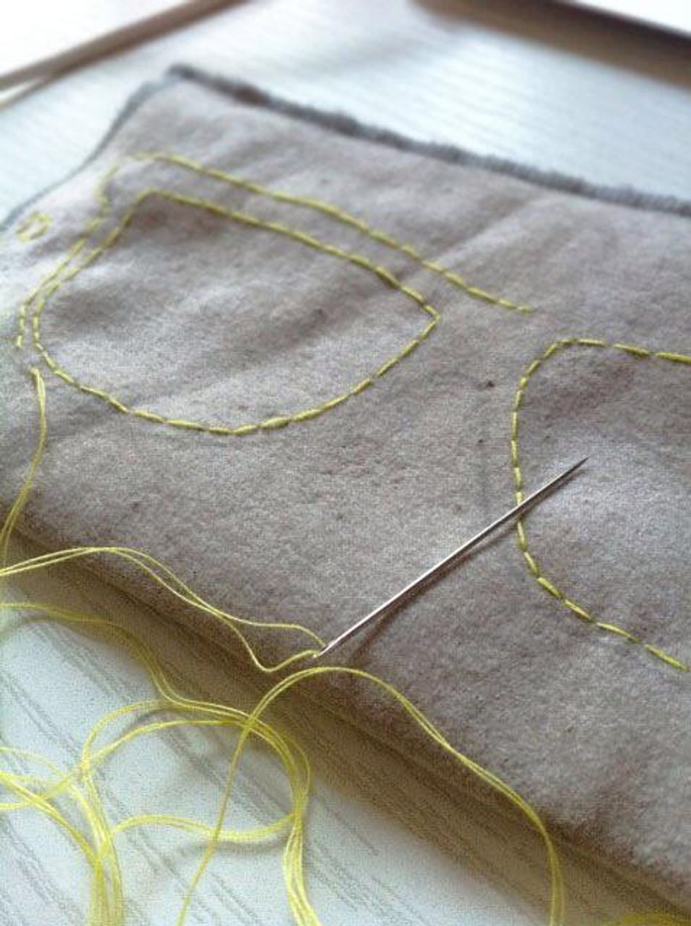 my sunglasses didn’t want to stay inside their cover, so i quickly attached a snap fastener. since I had to kill some time, this old boring pouch turned into a little hipster embroidery project: