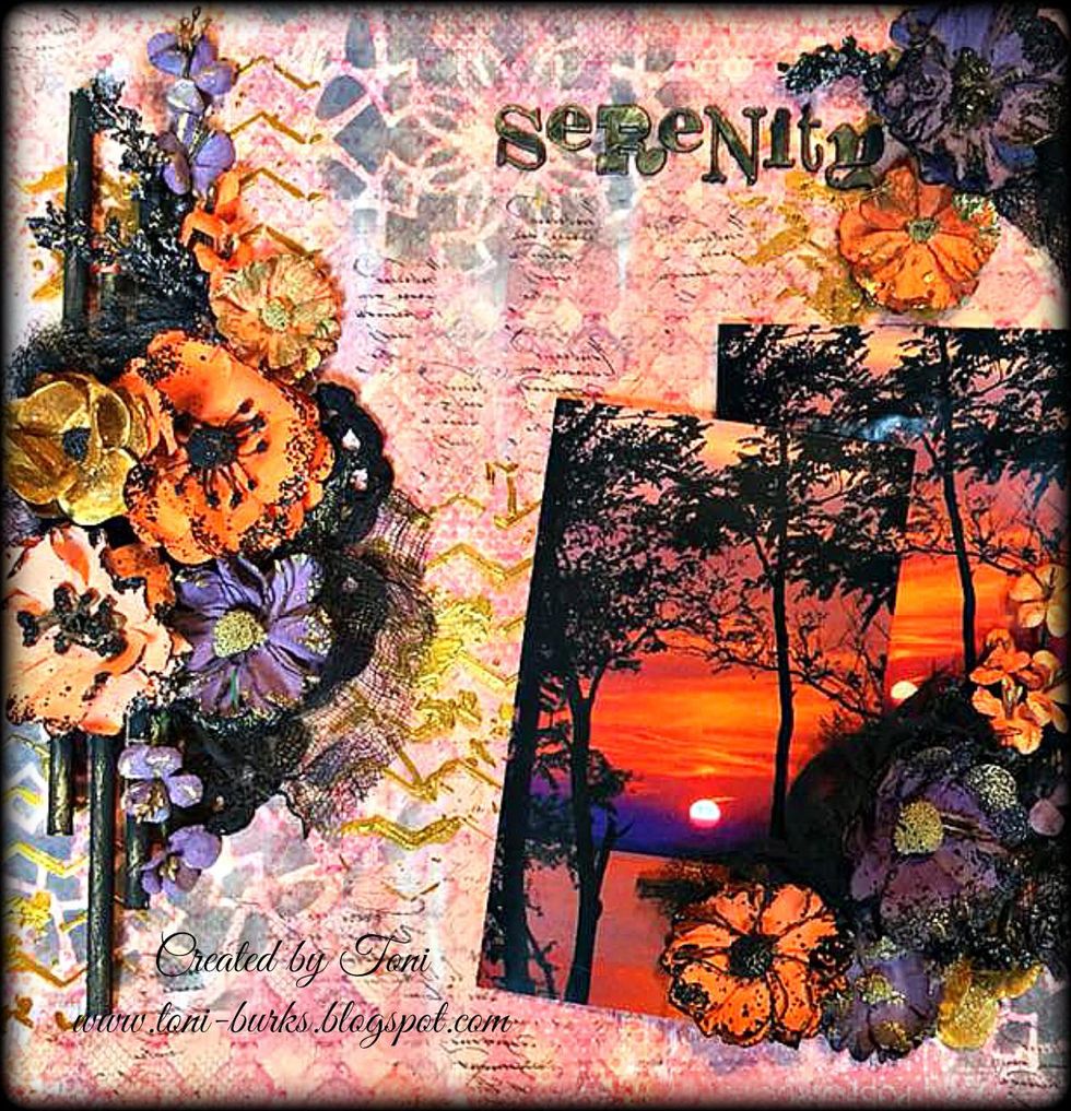 The side of the layout was enhance by taking straws gluing together and painted them with black Tuxedo, glued a piece of black doily to the layout