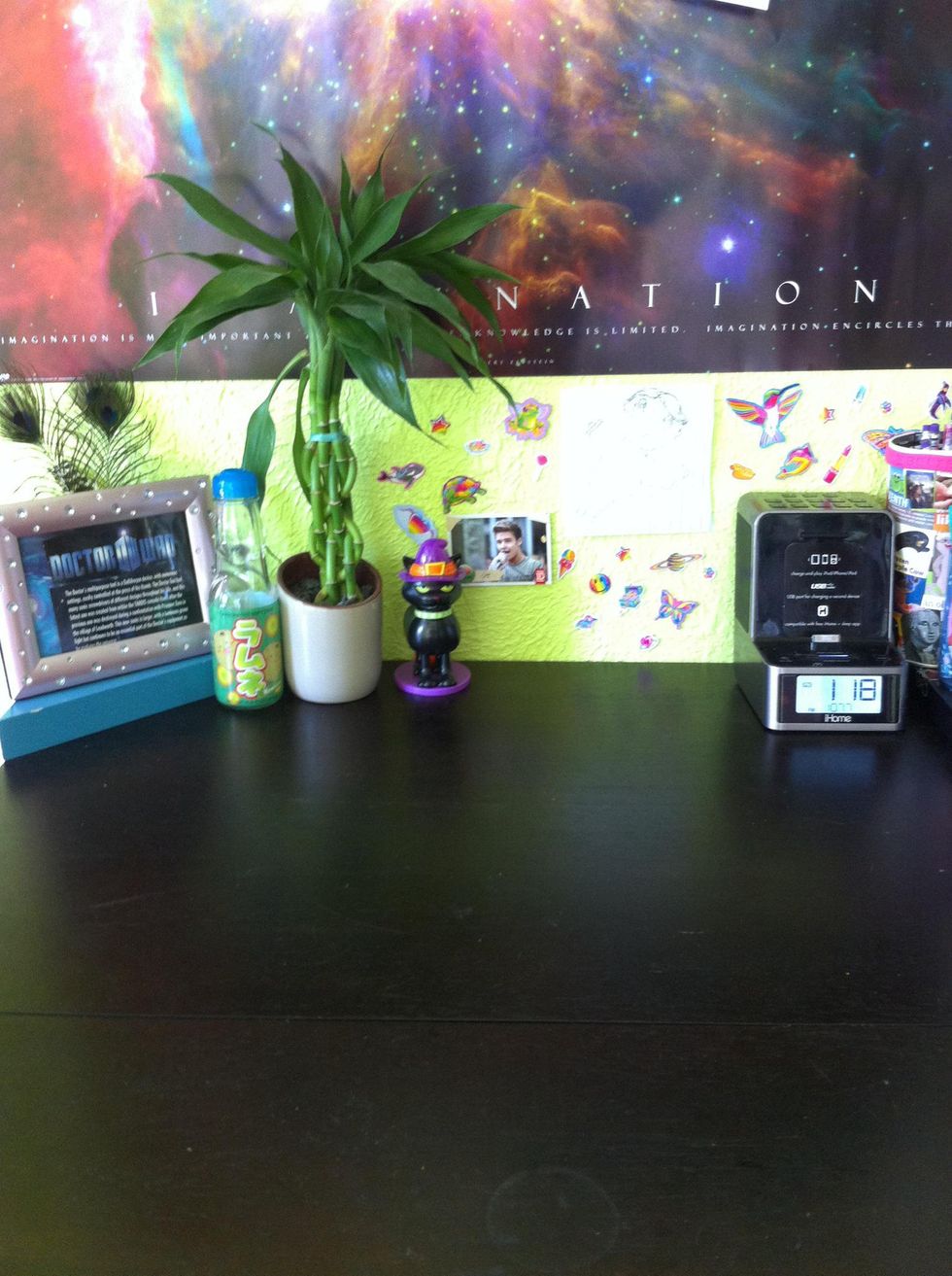 I just added a bamboo plant and a kitty for Halloween to my desk. Bamboo makes better desk plants rather than window plants.