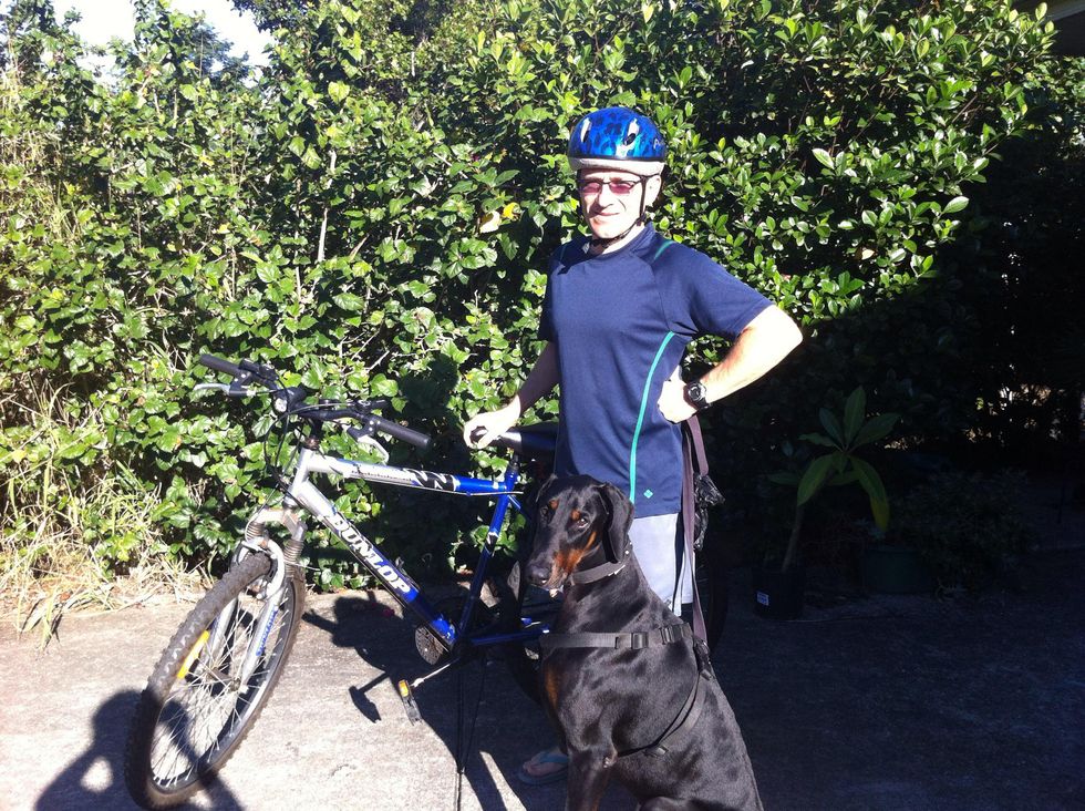 One happy exercised puppy. We cover about 2.5 km in about 8 minutes.