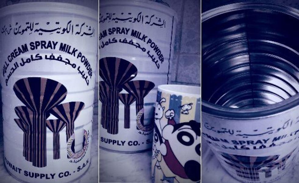 3- Then put the paper sticker on the lid of the milk in order to give a beautiful sight ...