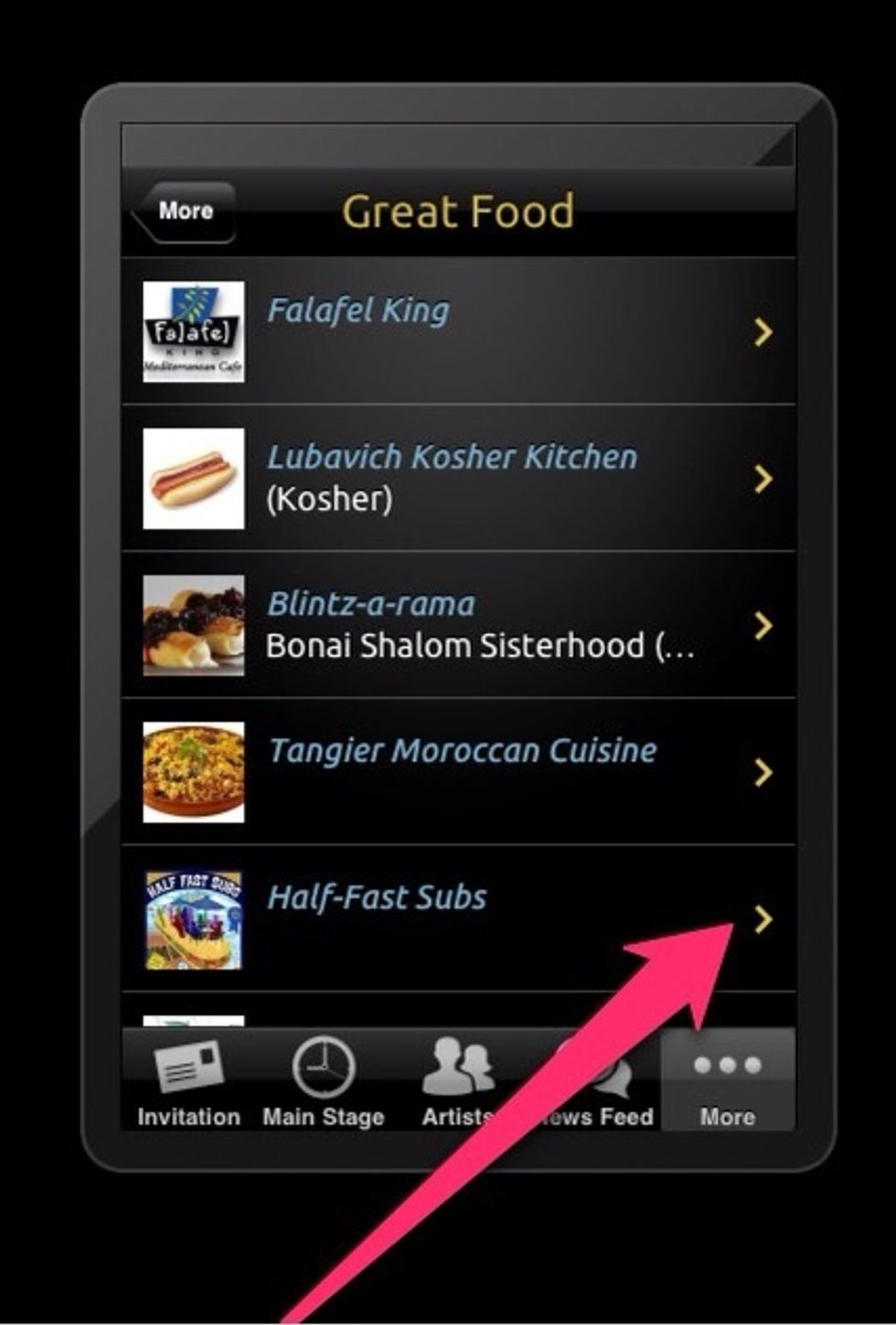 The More button includes food, nonprofits and other info.