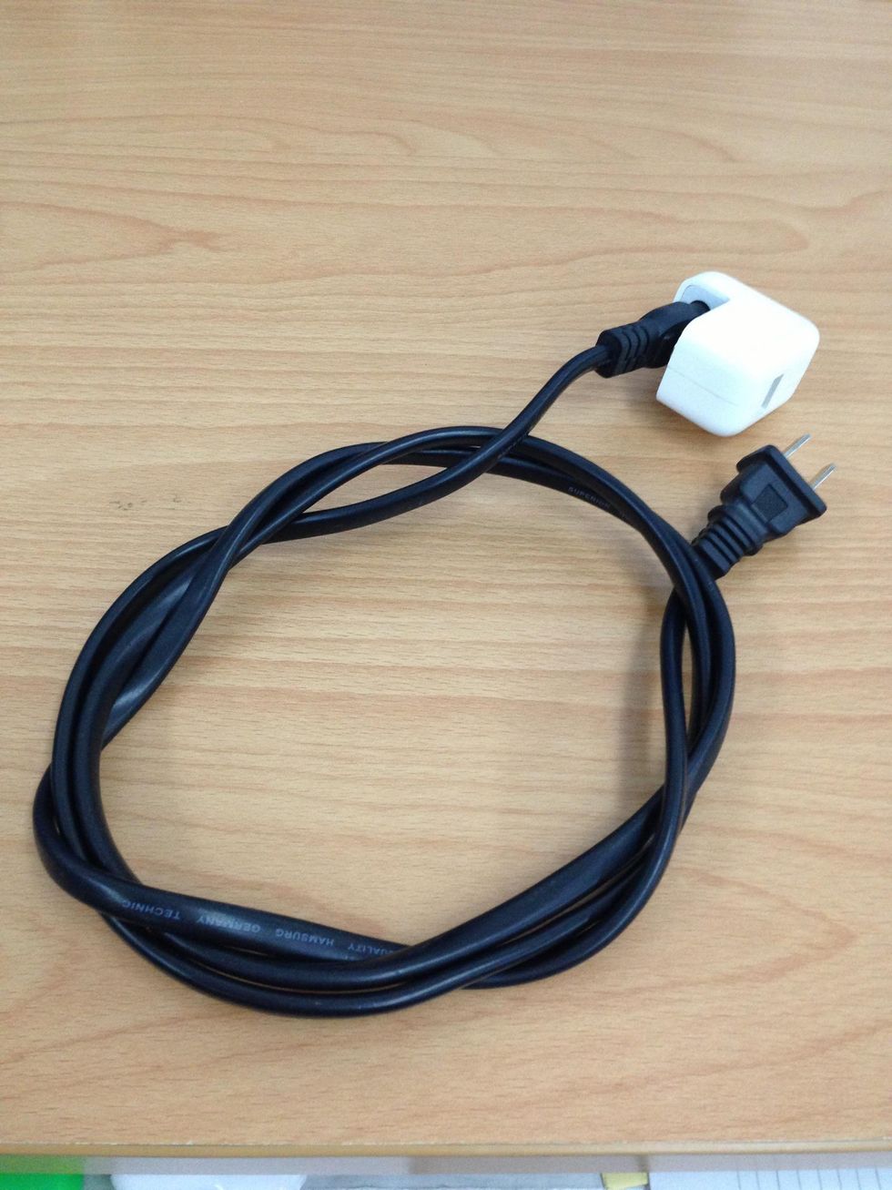 Take the iPad charger and remove the region-specific plug to expose the connector. (I've already removed mine on this pic)