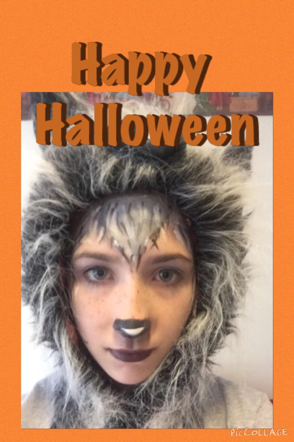 Put some gray face paint on from your temple to your chin, do this on both sides of your face.