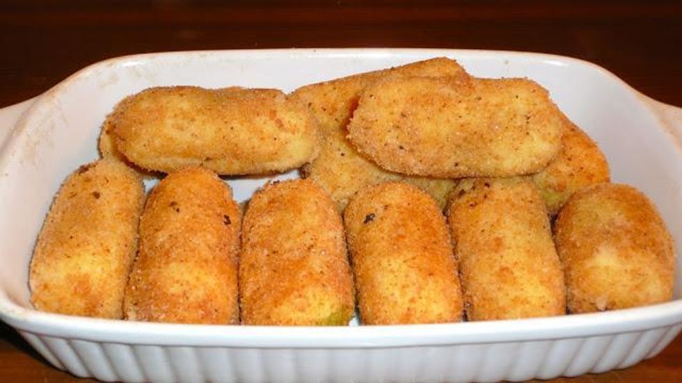 Enfournez et retirez du four les croquettes quand la chapelure commencera à prendre couleur.