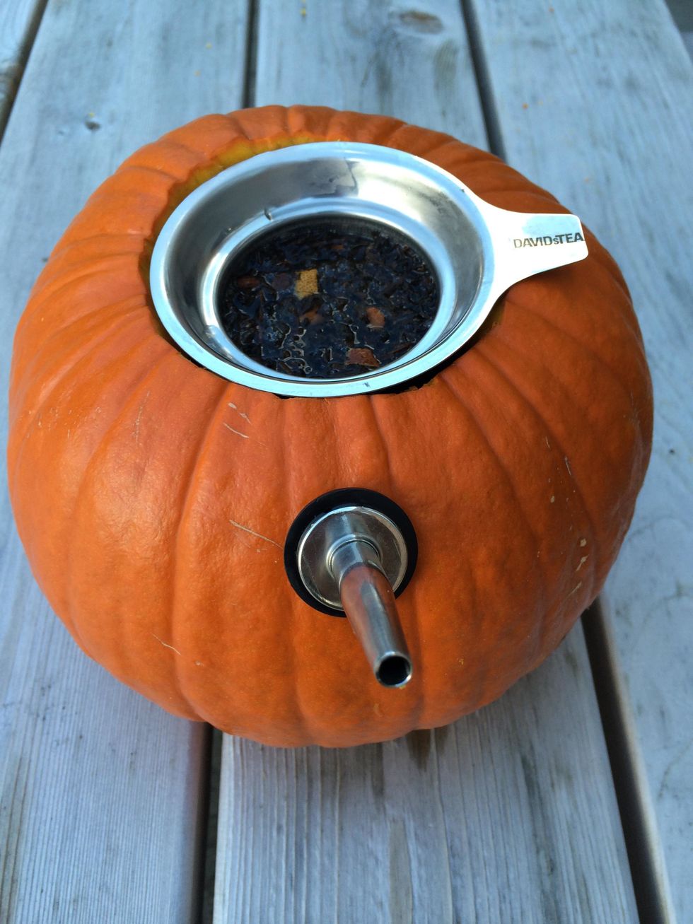 Et maintenant, vous êtes prêt à infuser ! Insérez votre infuseur dans la citrouille.