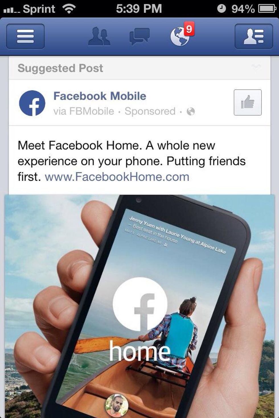 Advertisements are listed inline with your feeds as 'Sponsored' items