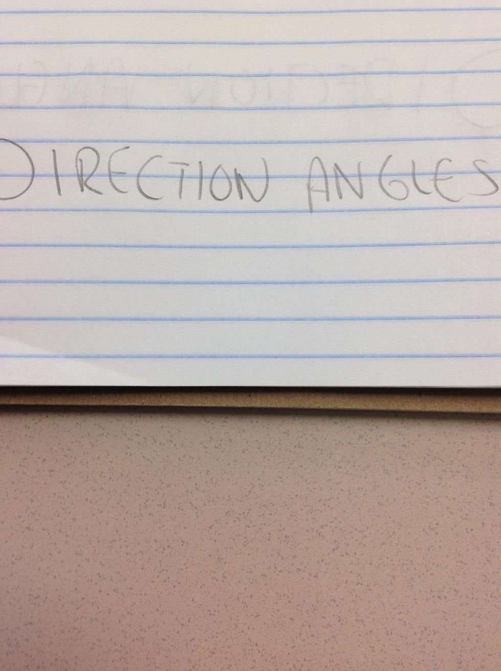 This is the original problem that you are presented with: 8i-2jThis is the equation you must use to find a direction angleYou then plug it into your equation (8 is a, -2 is b)This is your final answer and you now have a direction angle