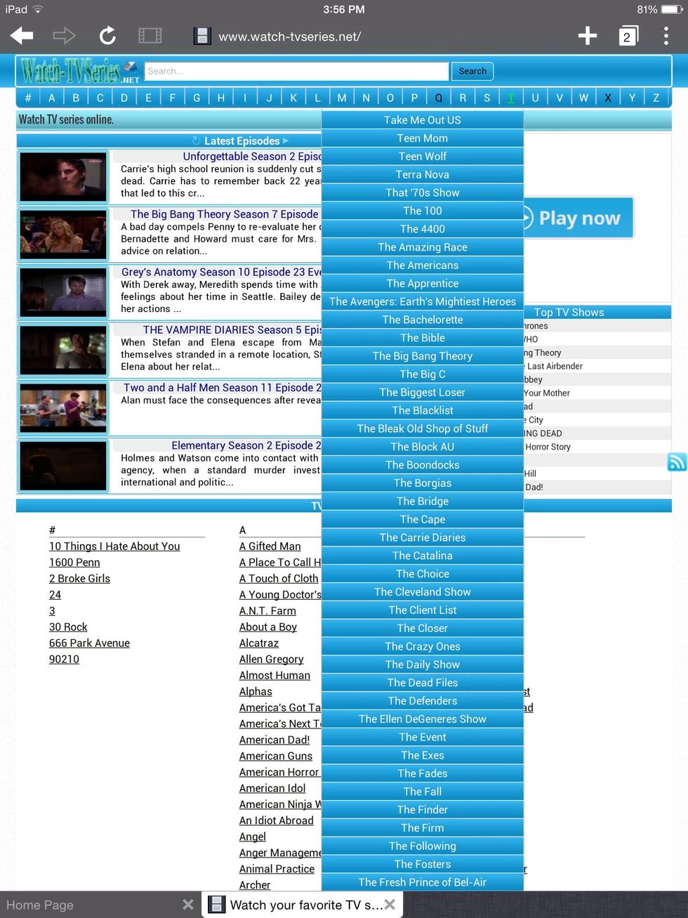 Now select the letter that the tv show your looking for starts with. Shows that start with "the" are under the letter T.