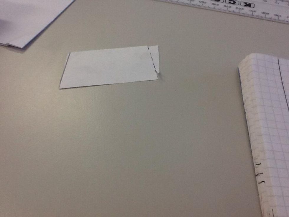 Cut as shown on the picture above.Try and make another shape using the piece of paper you cutTah-dah you have now successfully worked out the area of a parallelogram.