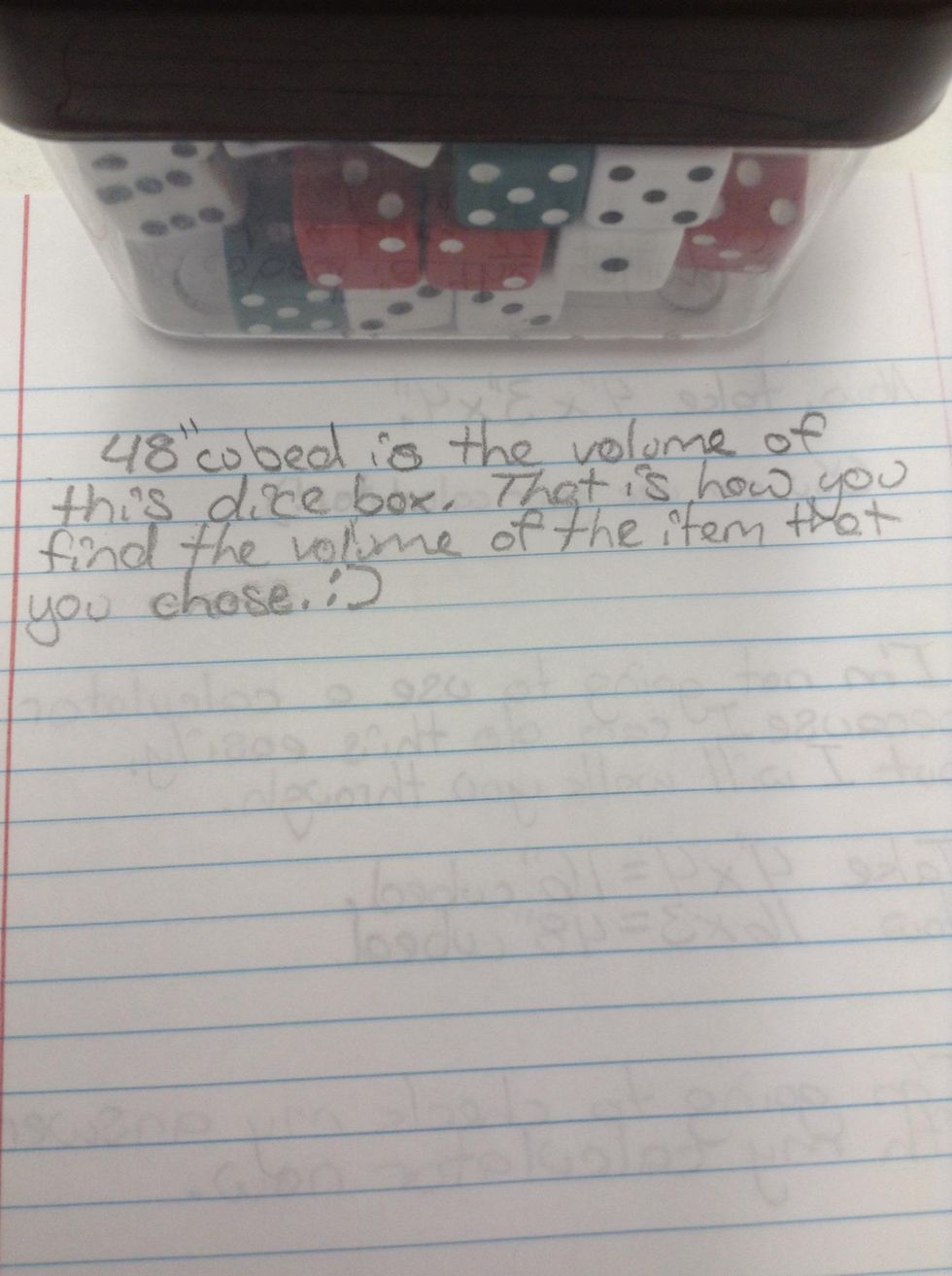 Then take the Length and measure it. This dice box is at 3 and 3/4", so because I was taught by my teacher to round, I'm going to round it up to 4".
