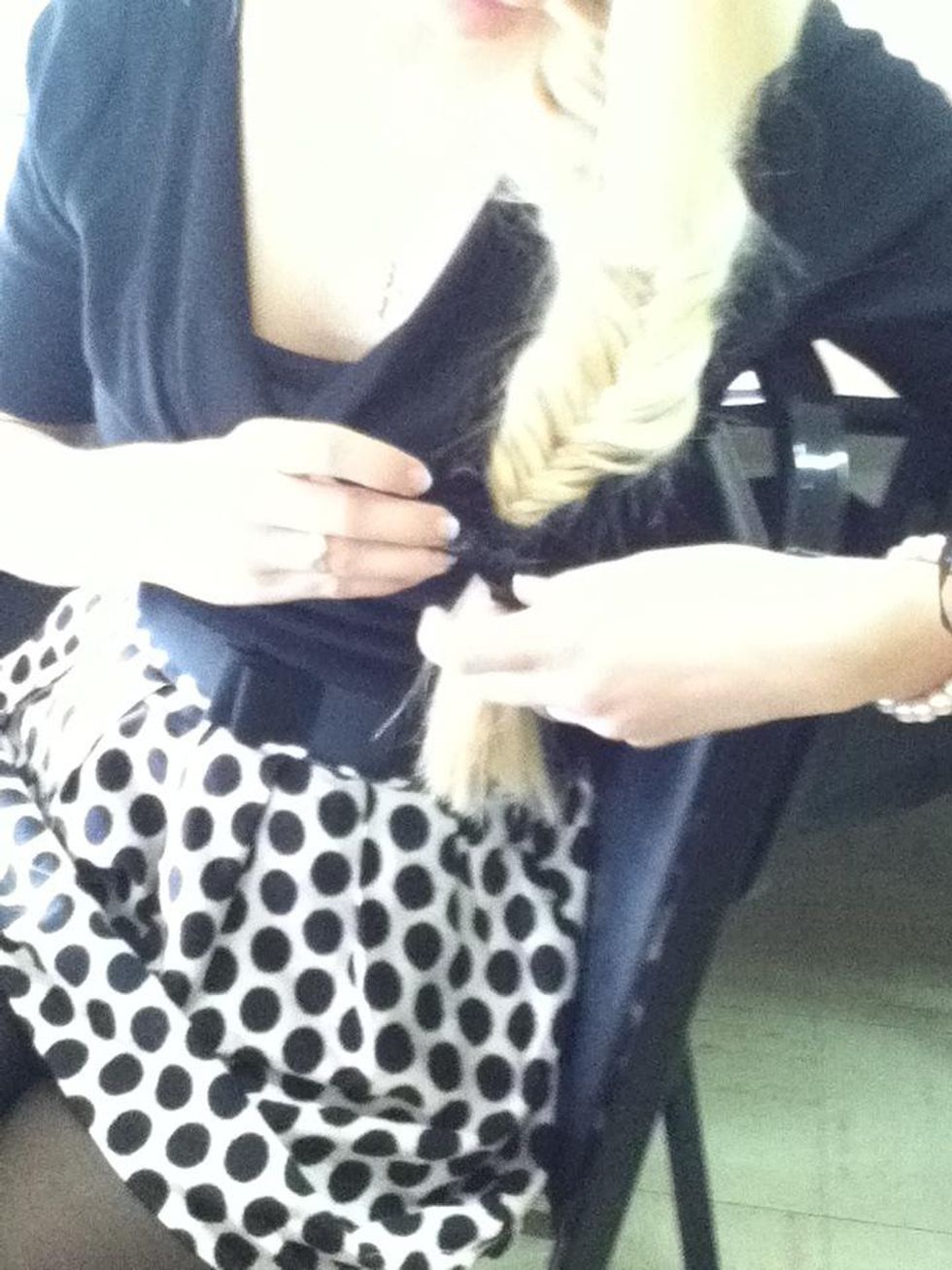 Use the piece of ribbon to tie a bow over the hair tie at the end of your braid.