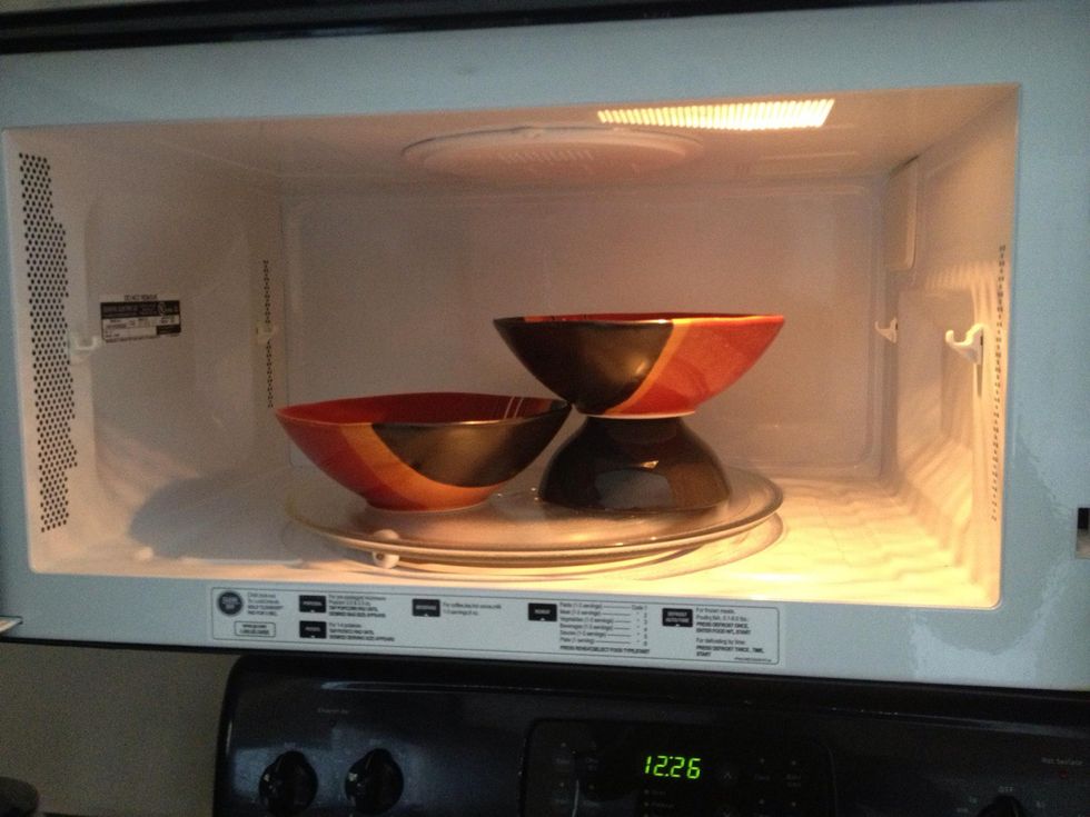 Place one of the bowls on a cup or smaller bowl, now they can both turn freely without hitting the sides