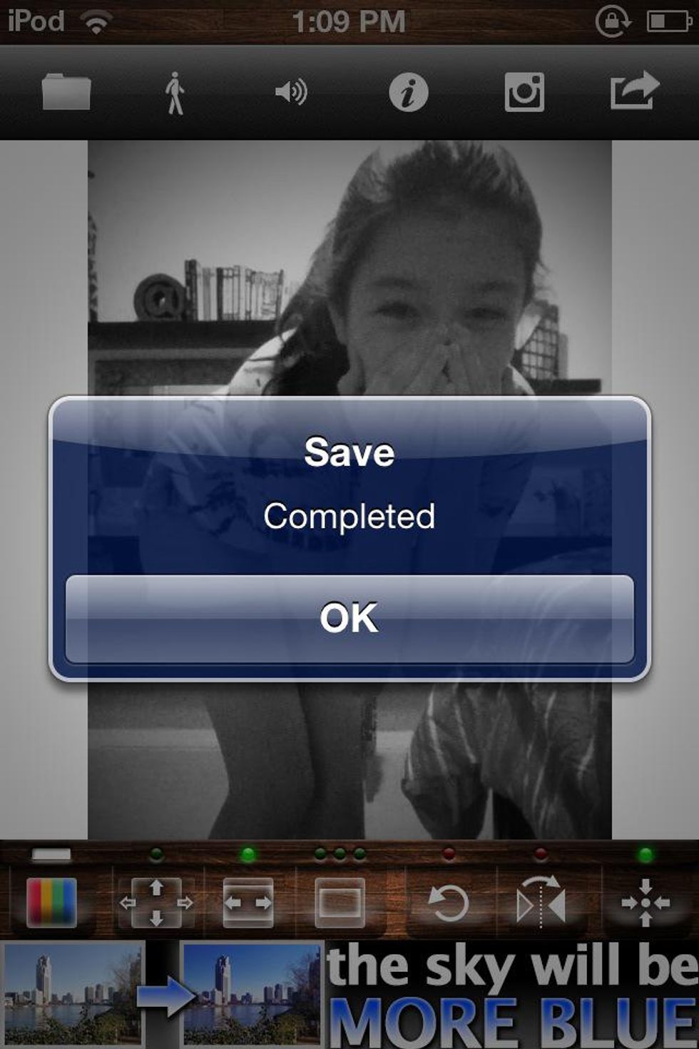 Wait until your picture is saved and upload it to instagram as if it was a normal picture.