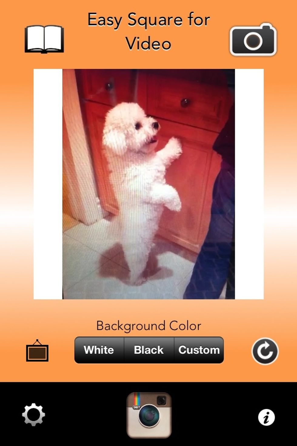 Then select any options you want (change background color or add a frame). We'll just do a basic white background to blend in with Instagram's background color