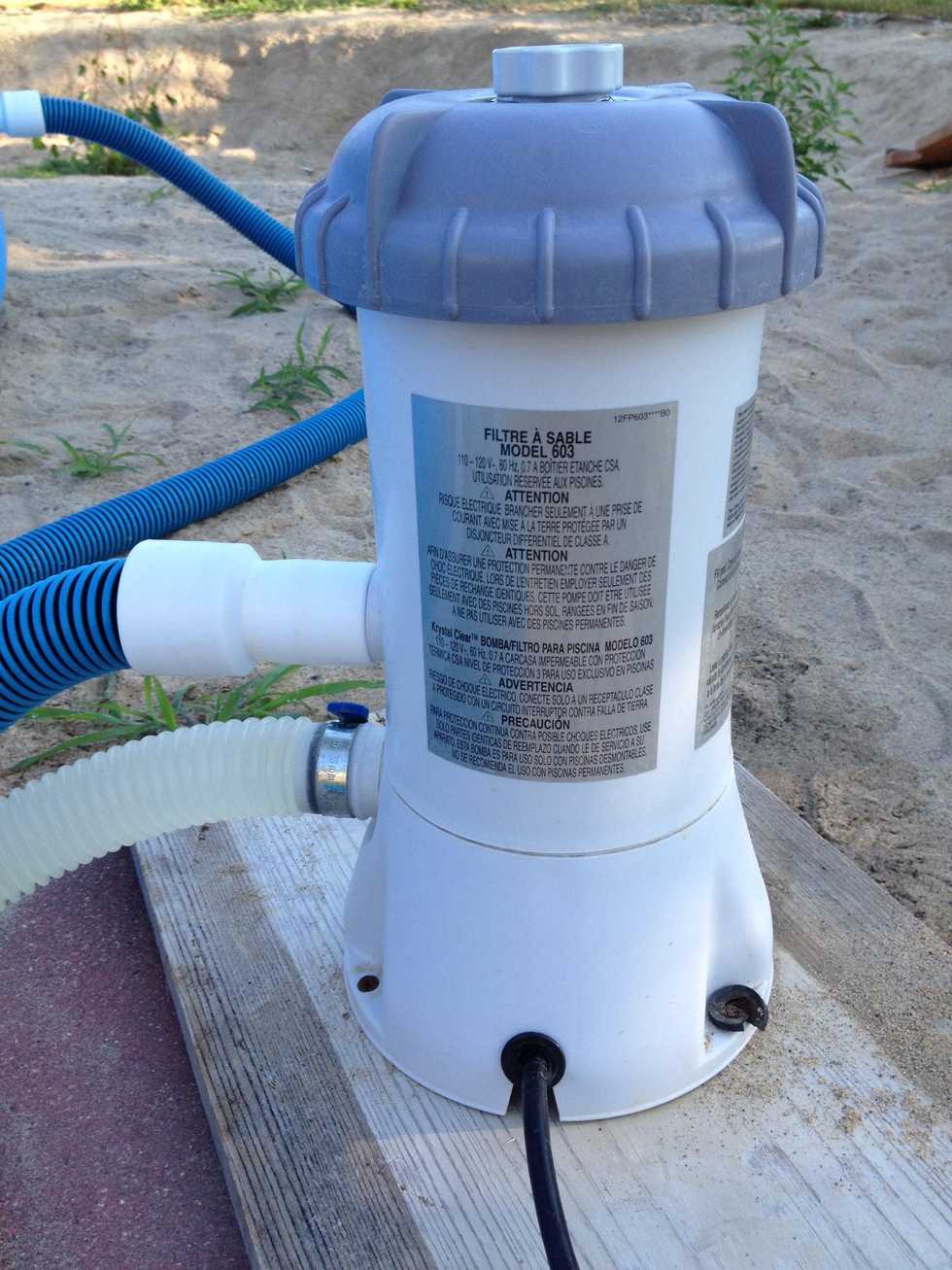 The filter pump for my Intex 12x30' pool jammed with sand, hair, and nasty stuff and stopped running. A new pump cost nearly the amount I paid for the whole pool! Here's what I did to fix it instead.