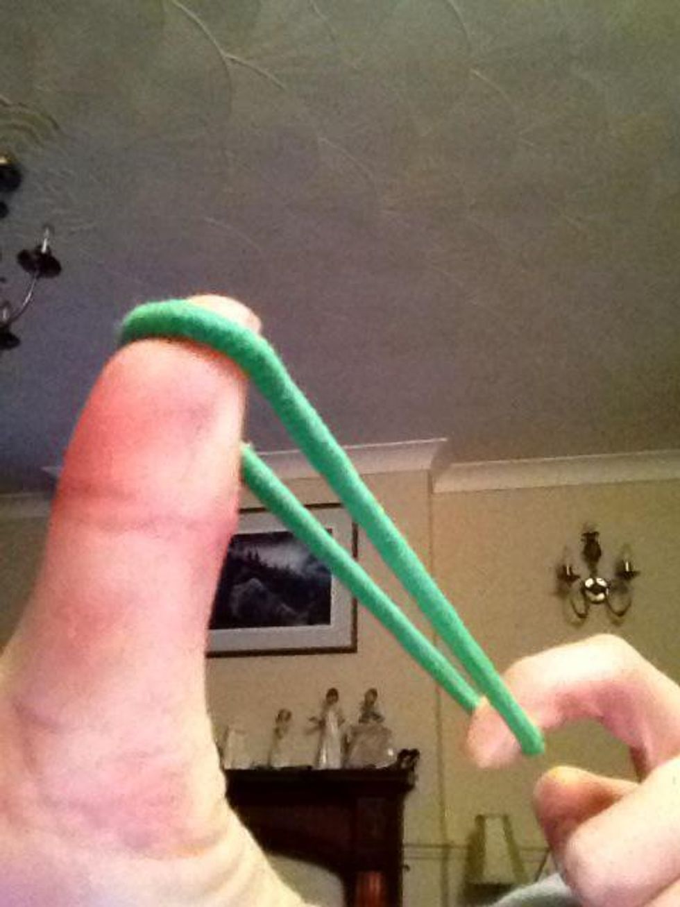 Hook your other index finger through the bobble and let your thumb nail face the ceiling. Pull tight!!!
