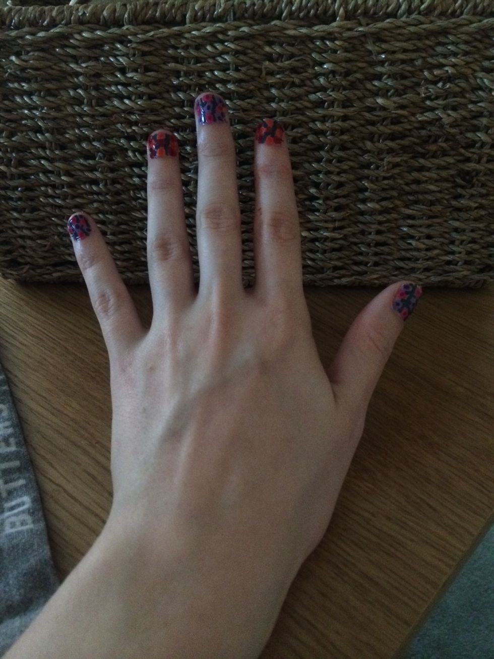I then did the exact same process for the other nails but used orange and red on every other nail but you can do whatever you want.