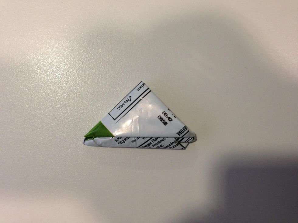 Now you have a neat and tidy crisp (chip) bag - no more scrunching them up and taking unnecessary space in the rubbish (trash).