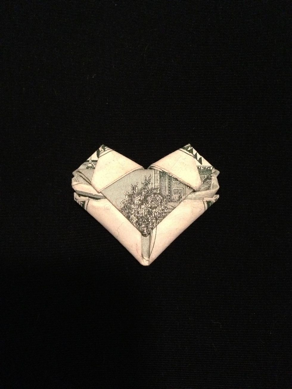 Fold tips sideways to the front to create top shape of heart.