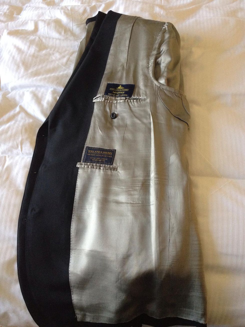 Slide your hands inside lapels and smooth out any creases in jacket lining.