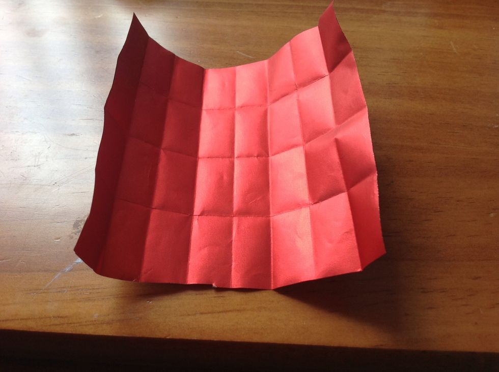 Opening it and it should look like the picture. You are essentially halving the squares you folded before.