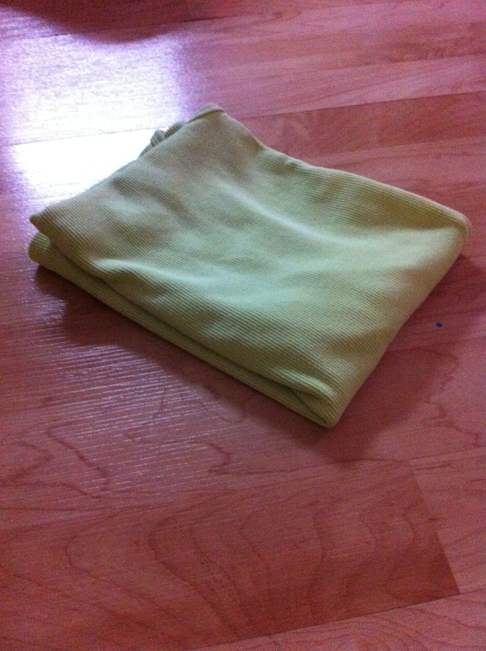 It will look like this folded (this is laid sideways in front of me and the next step grab your two bottom corners and fold up)