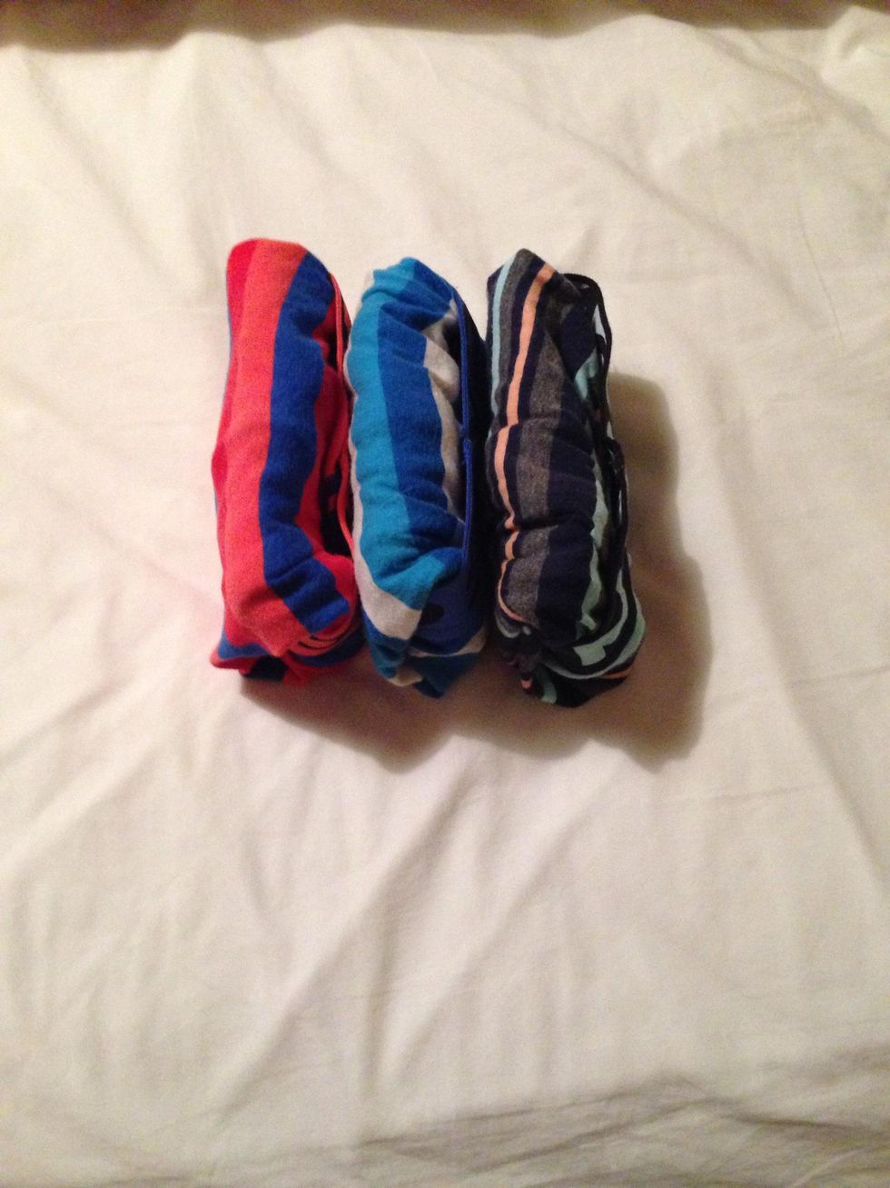 Flatly lay out boxers or undiesFold one side in half wayFold over the other sideTurn around and fold the waist band up half way or soTuck the bottom bit, where the legs go into the waistbandStacked nicely!!