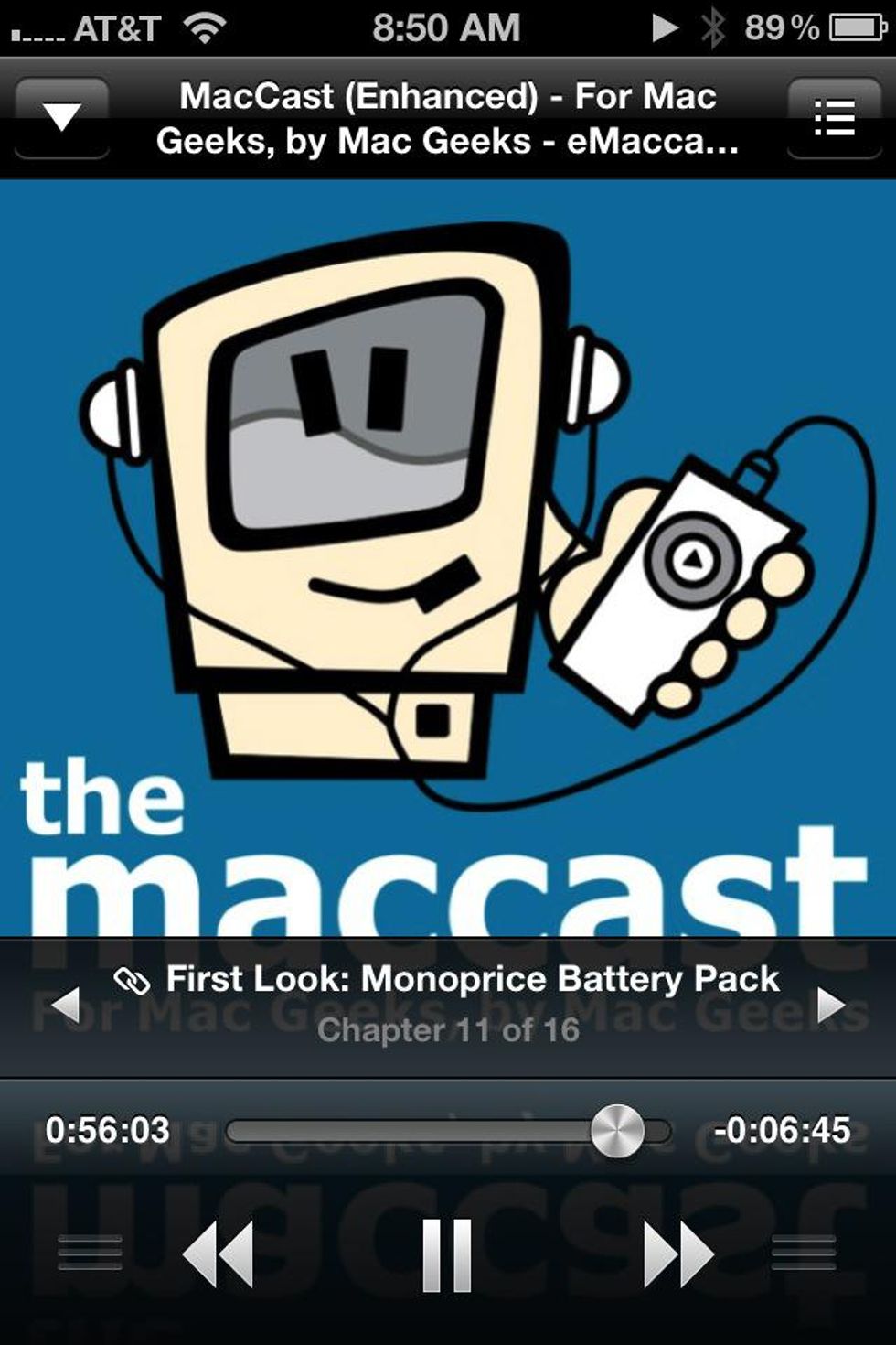 Drag the bottom of the podcast screen to bring up additional menu options.