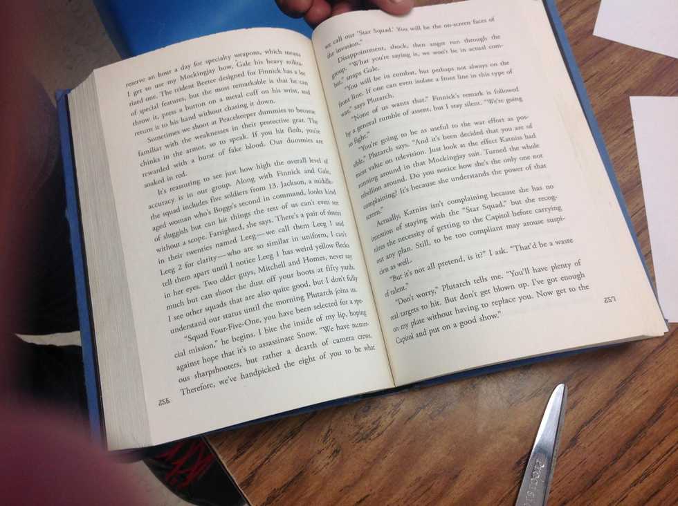 Here are the supplies you will need for this activityGrab your scissorsCut your paper in halfTake your half paperOpen your bookPut the paper all over the other lines of the book except for one line and there you go you can focus on one line