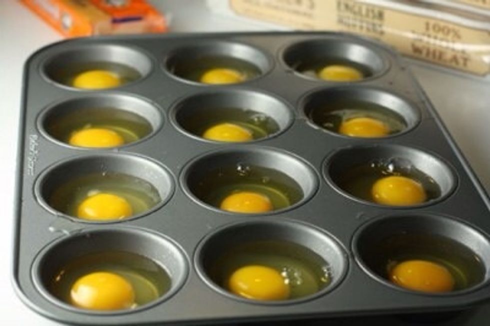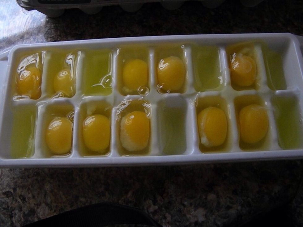 Crack all the eggs into a freezer safe container. (I use ice trays)