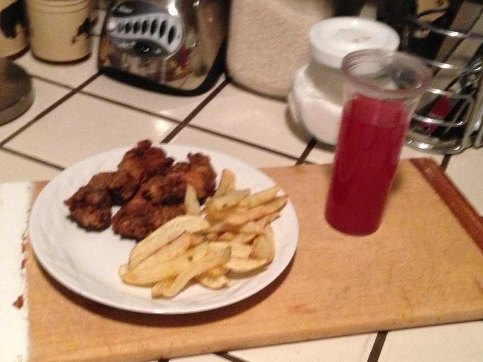 Start your fries fist it takes a little longer than chicken I like to have everything done a the same time
