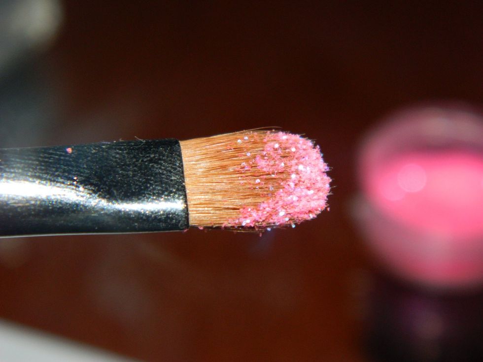 Collect a little bit of your loose glitter on your eyeshadow brush.