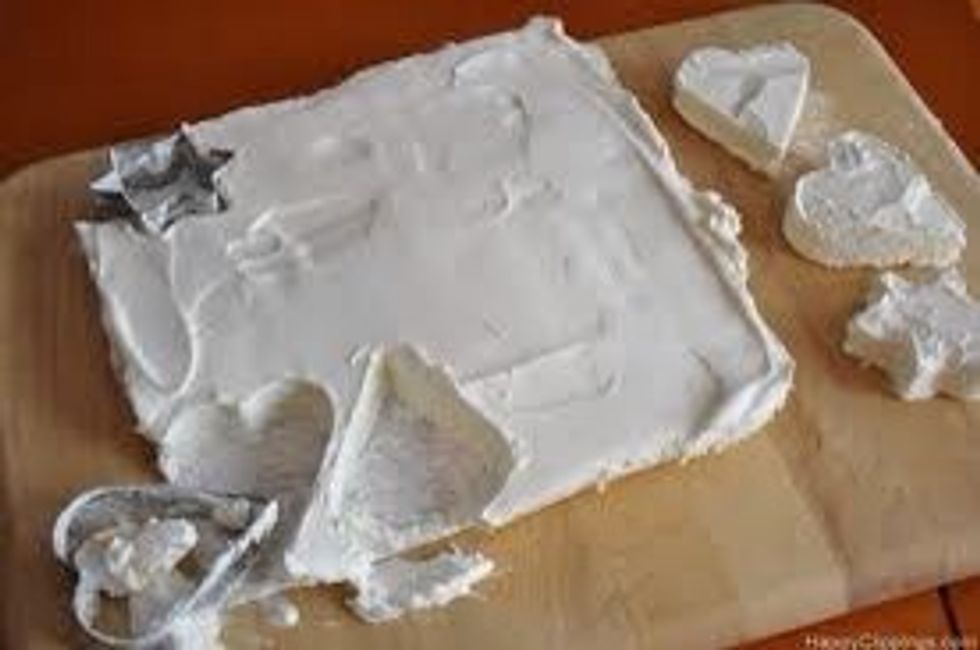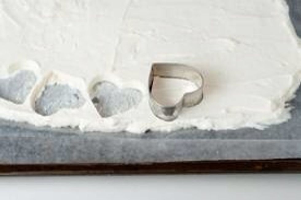 Spread cream evenly on sheet-freeze entire sheet and then use cookie cutter shapes to cut out the frozen cream.