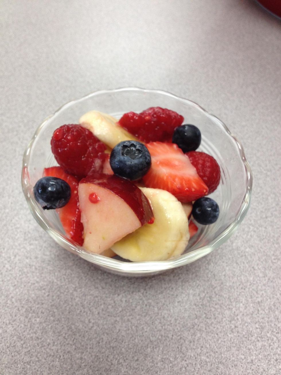 Toss fruit in bowl with honey-lemon mixture and enjoy finished product